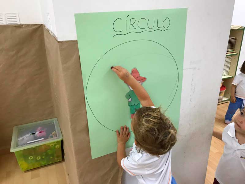 En el aula, hemos trabajado la forma circulo, seguimos su forma a través del tacto, visualizándolo en distintos elementos de la clase y con objetos de distinto tamaño, pero siempre con la misma forma.
