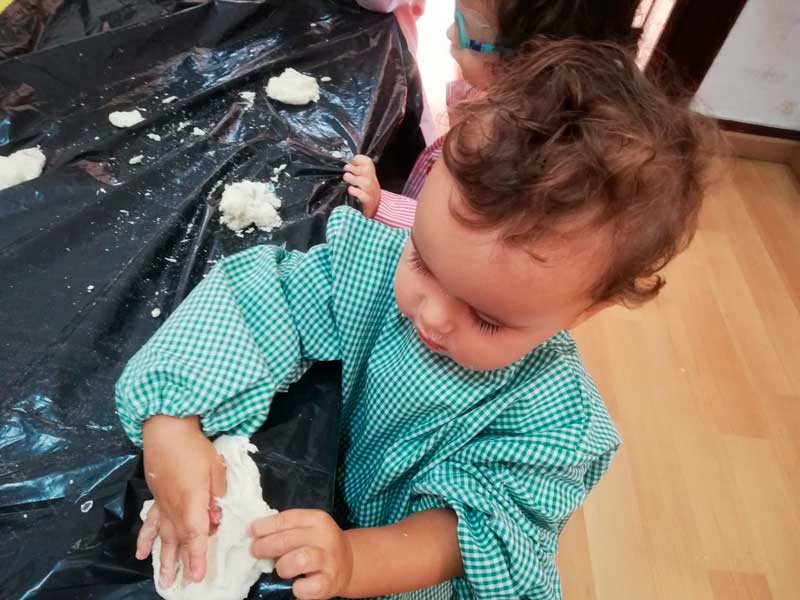 Este tipo de material nos permite desarrollar nuestra psicomotricidad fina: apretando, modelando, pellizcando, partiendo, aplastando, estirando, etc.