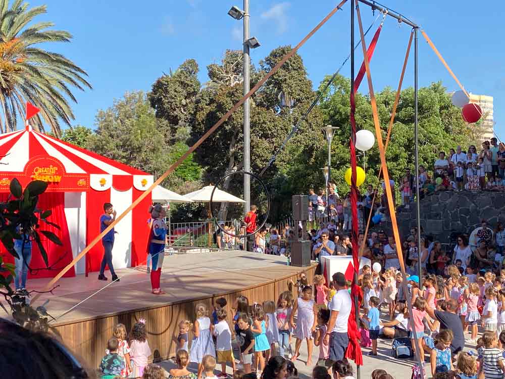 El circo había vuelto a la ciudad y lo hacía de una forma diferente. Petit Circus transformó el parque Doramas en un espacio mágico, lleno de rincones que sorprendían a los niños y a las familias que decidieron pasar por ahí. Cuentacuentos y equilibristas, magos y payasos, todos los elementos clásicos del circo se podían encontrar en cualquiera de los puntos que se habían habilitado por todo el recinto. La primera piedra del proyecto